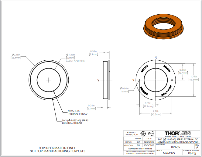 Thorlabs索雷博     M2M32S - 黄铜显微镜转接件