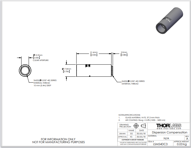Thorlabs索雷博 LSM54DC3 - 色散补偿器
