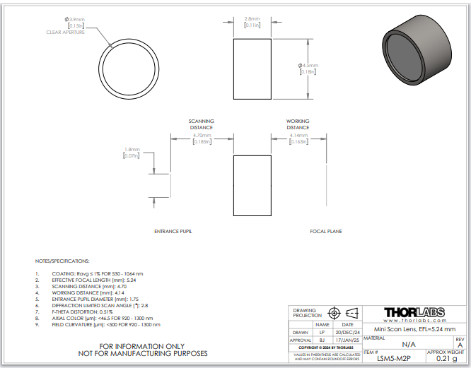Thorlabs索雷博 LSM5-M2P - 小型扫描透镜