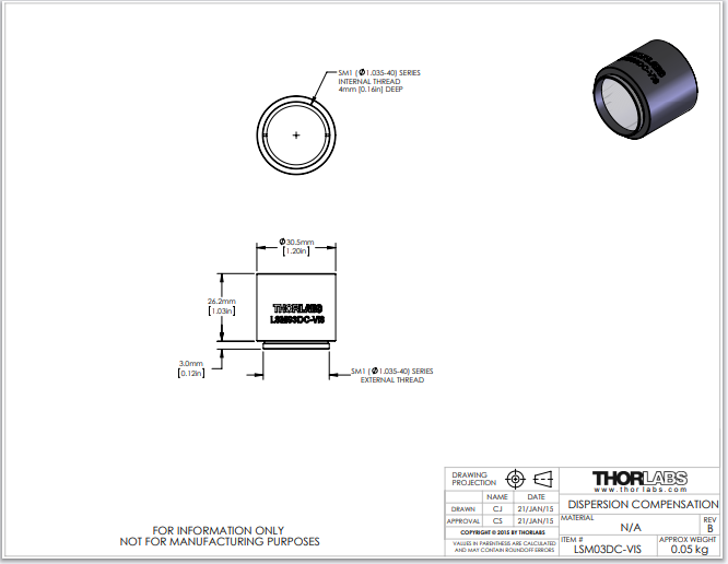 Thorlabs索雷博     LSM03DC-VIS - 色散补偿器