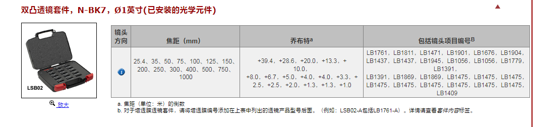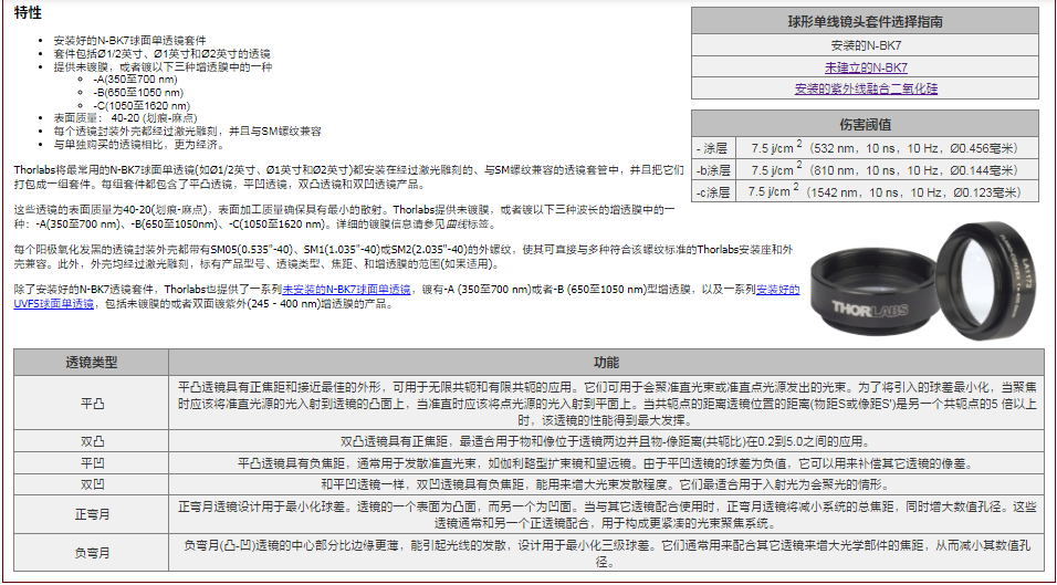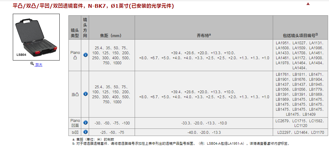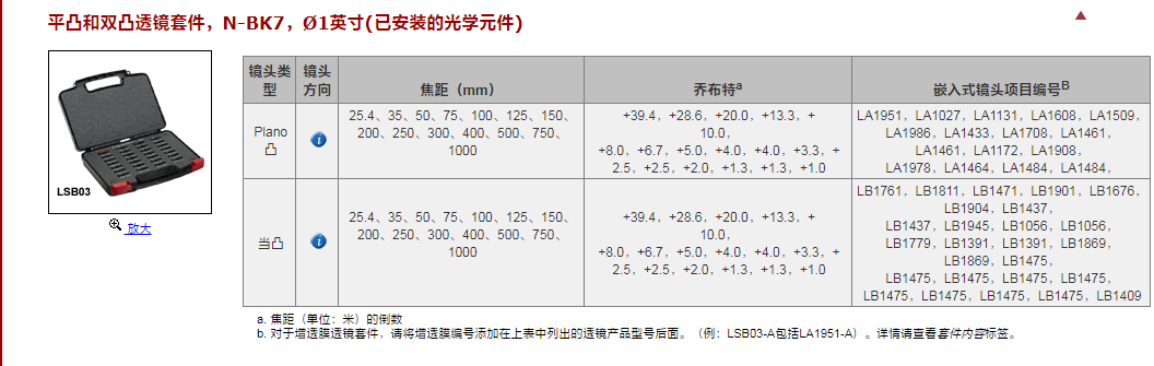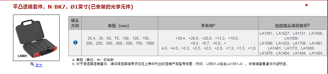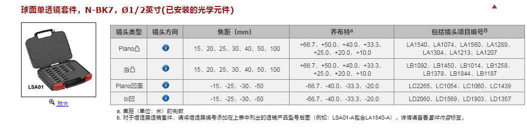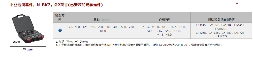Thorlabs索雷博 LSC01-C - 平凸透镜套件