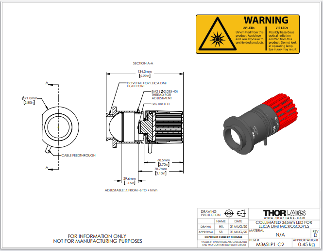 Thorlabs索雷博     M365LP1-C2 - 准直LED