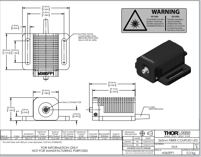 Thorlabs索雷博     M365FP1 - 光纤耦合LED