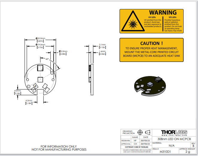 Thorlabs索雷博 M310D1 - MCPCB上的LED