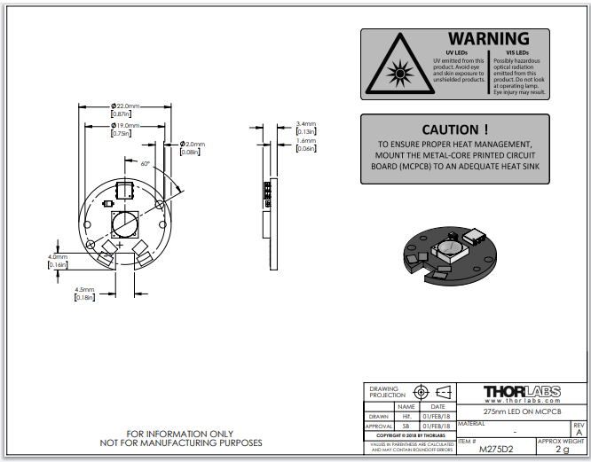 Thorlabs索雷博 M275D2 - MCPCB上的LED