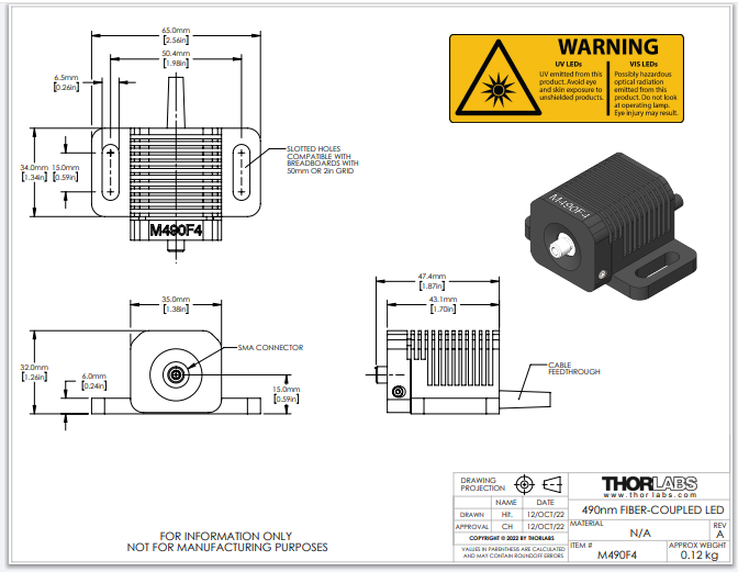 Thorlabs索雷博 M490F4 - 光纤耦合LED