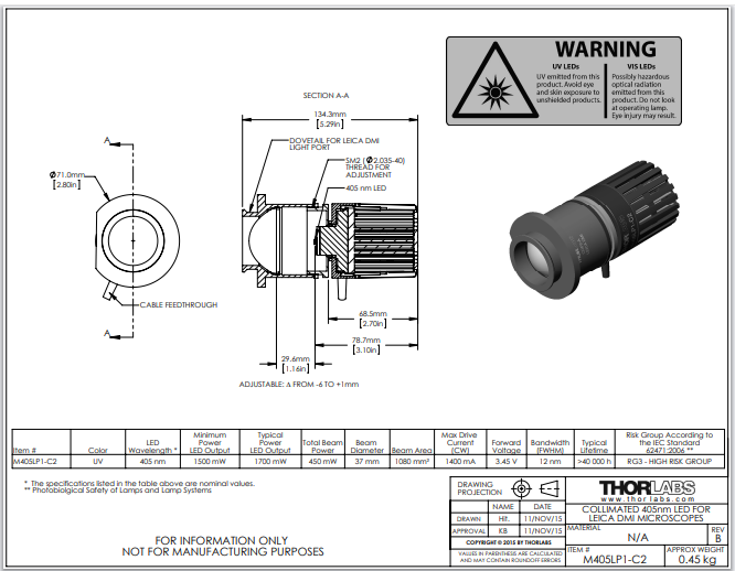 Thorlabs索雷博 M405LP1-C2 - 准直LED
