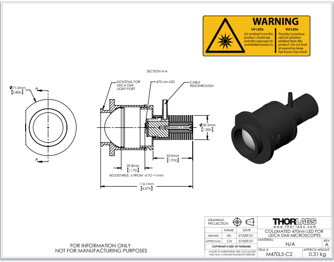 Thorlabs索雷博 M470L5-C2 - 准直LED