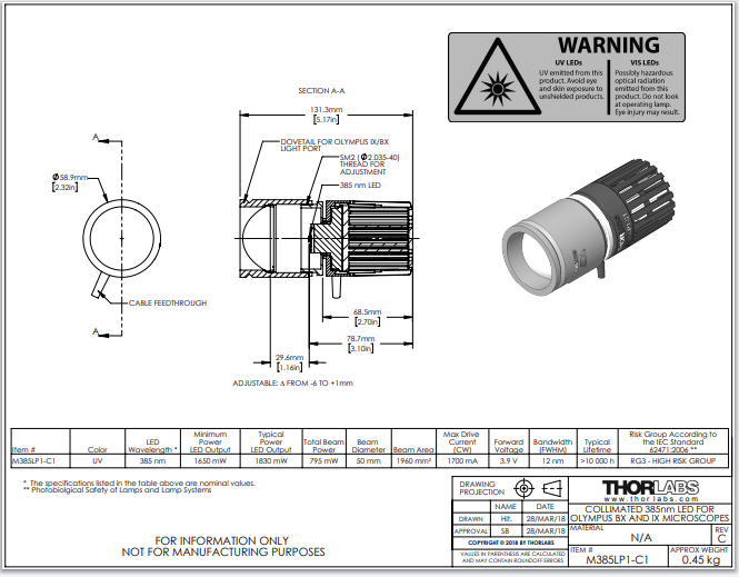 Thorlabs索雷博     M385LP1-C1 - 准直LED