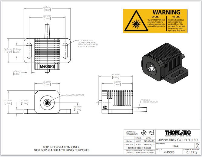 Thorlabs索雷博 M405F3 - 光纤耦合LED