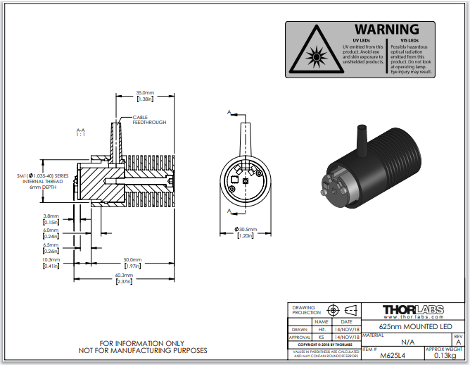 Thorlabs索雷博     M625L4 - 已安装LED
