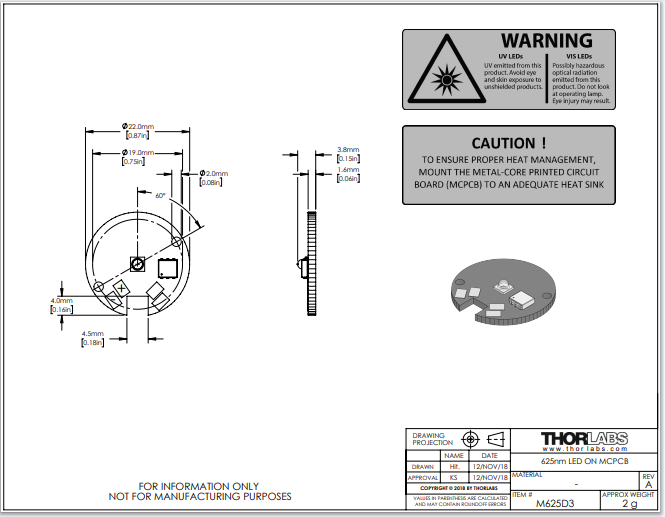 Thorlabs索雷博     M625D3 - MCPCB上的LED