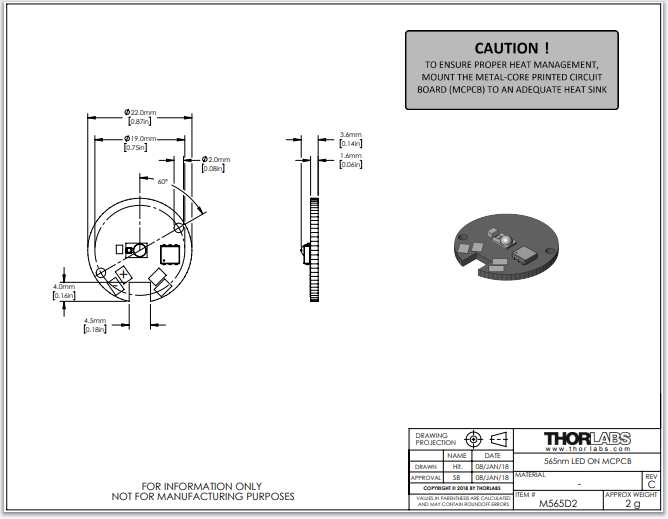 Thorlabs索雷博     M565D2 - MCPCB上的LED