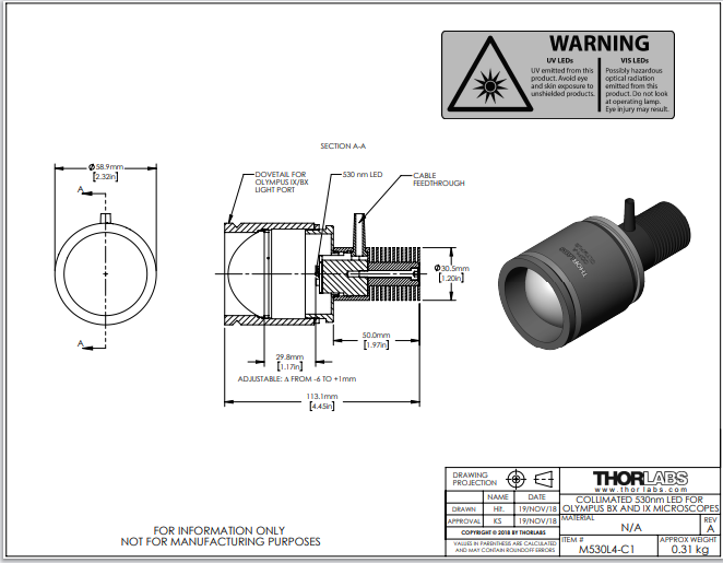 Thorlabs索雷博 M530L4-C1 - 准直LED