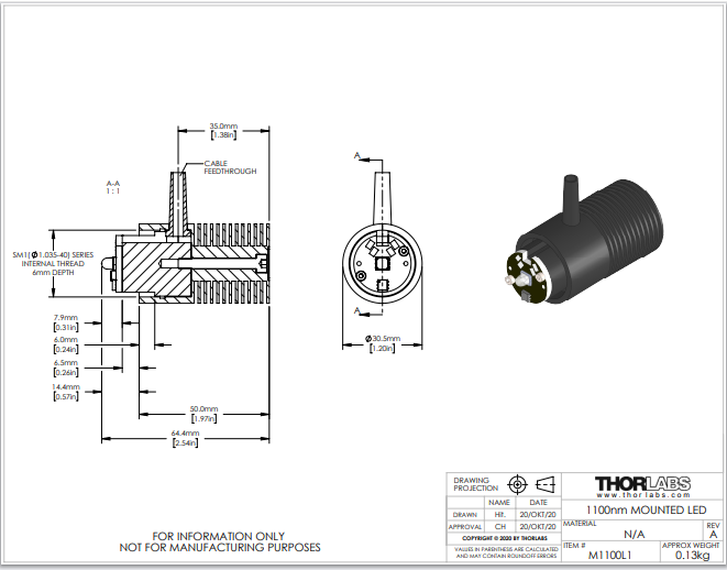 Thorlabs索雷博 M1100L1 - 已安装LED