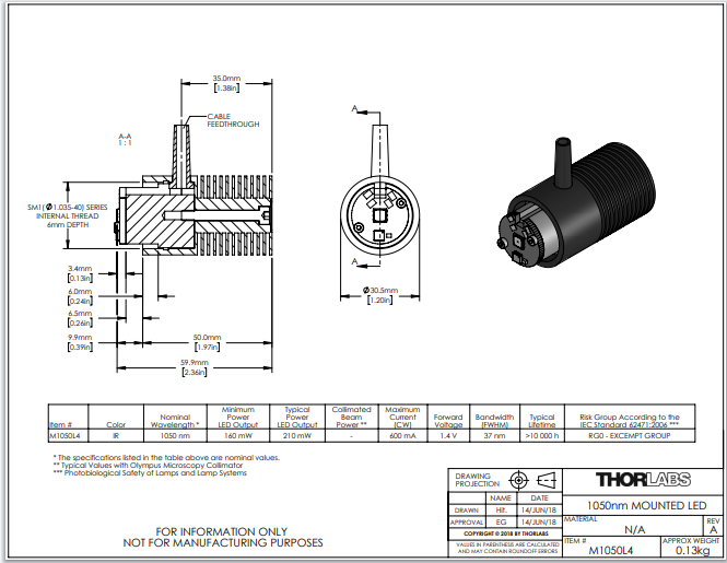 Thorlabs索雷博 M1050L4 - 已安装LED