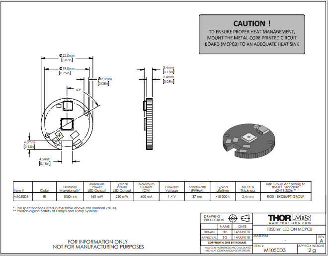 Thorlabs索雷博 M1050D3 - MCPCB上的LED