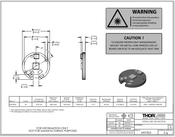 Thorlabs索雷博 M970D3 - MCPCB上的LED