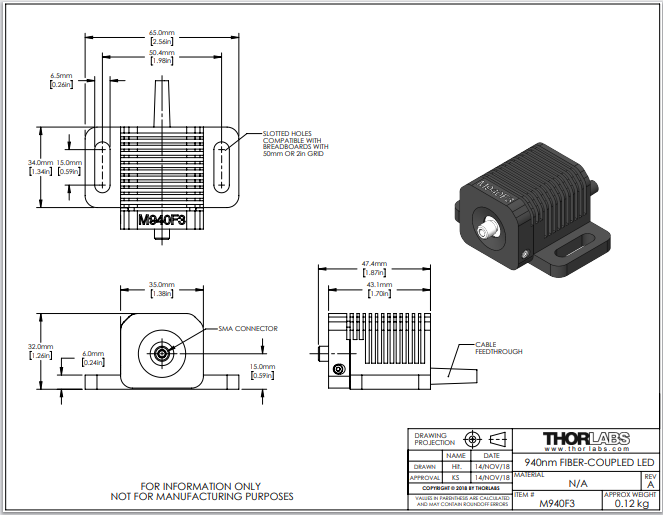 Thorlabs索雷博 M940F3 - 光纤耦合LED