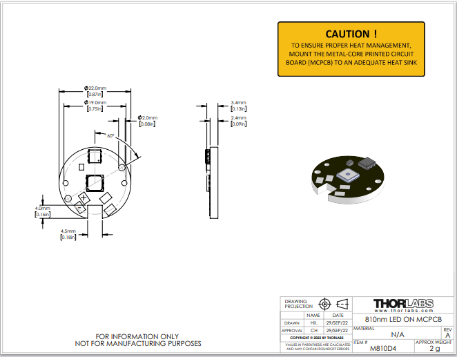 Thorlabs索雷博 M810D4 - MCPCB上的LED