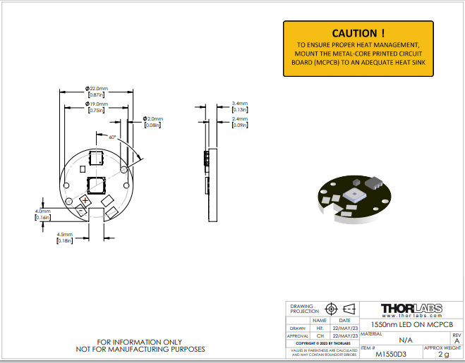 Thorlabs索雷博 M1550D3 - MCPCB上的LED