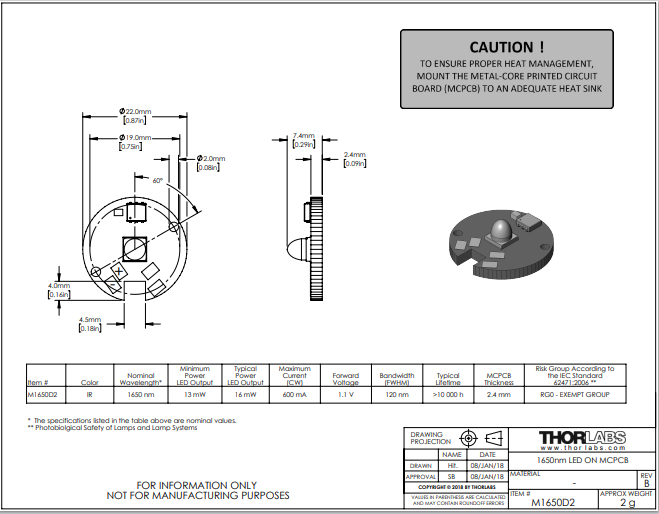 Thorlabs索雷博 M1650D2 - MCPCB上的LED