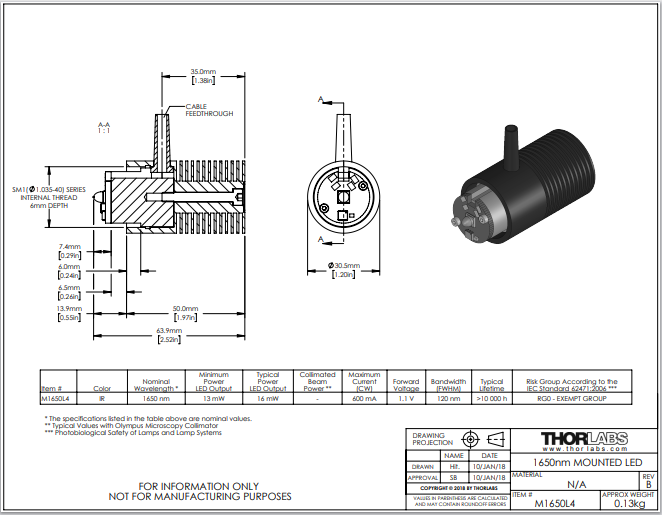 Thorlabs索雷博 M1650L4 - 已安装LED