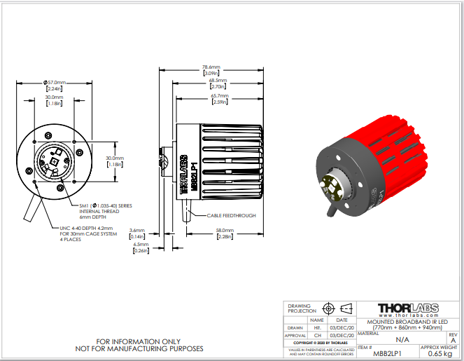 Thorlabs索雷博 MBB2LP1 - 已安装红外宽带LED