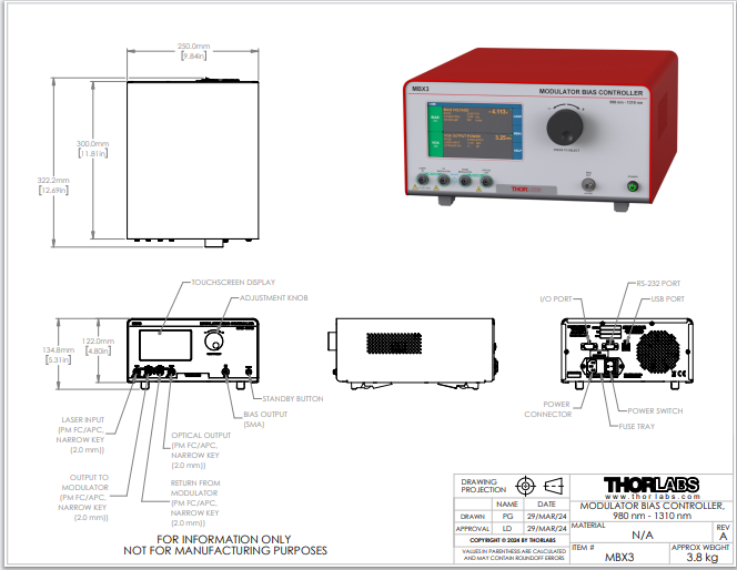 Thorlabs索雷博 MBX3 - 调制器偏压和功率控制器