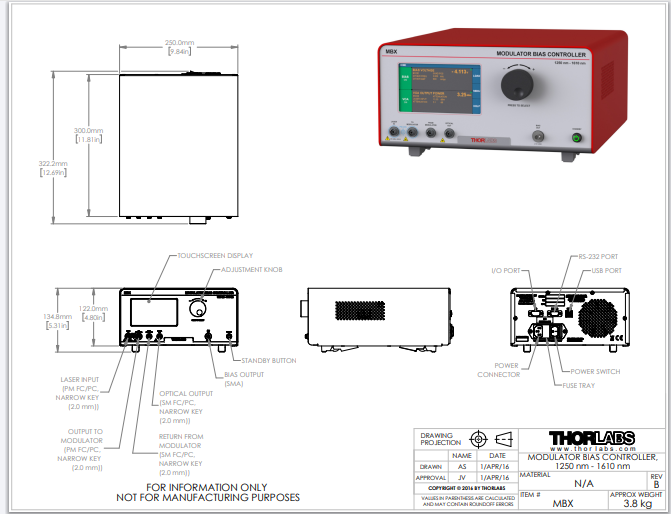 Thorlabs索雷博     MBX - 调制器偏压和功率控制器