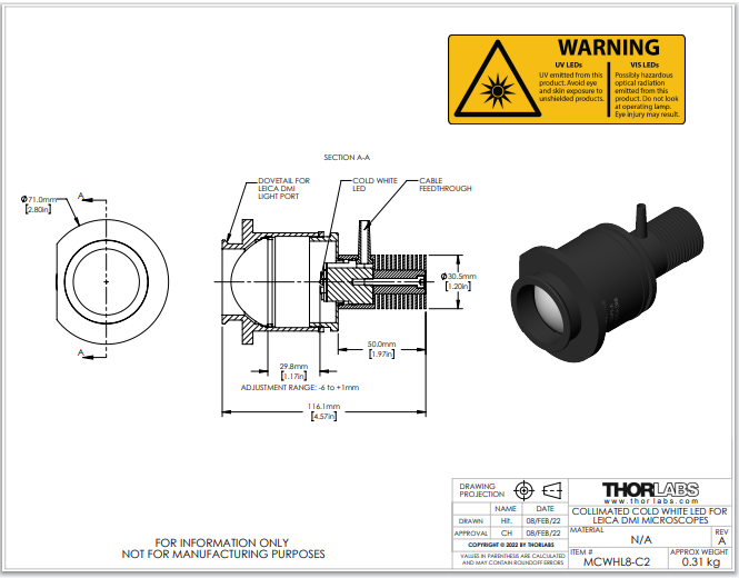 Thorlabs索雷博 MCWHL8-C2 - 准直LED