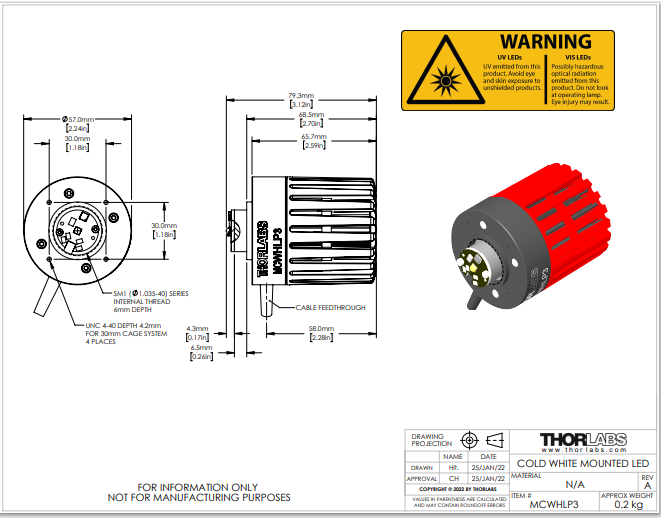 Thorlabs索雷博     MCWHLP3 - 已安装LED