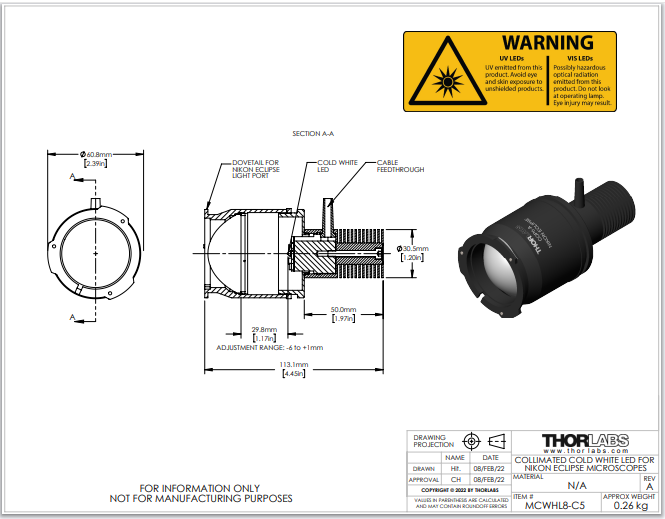 Thorlabs索雷博 MCWHL8-C5 - 准直LED