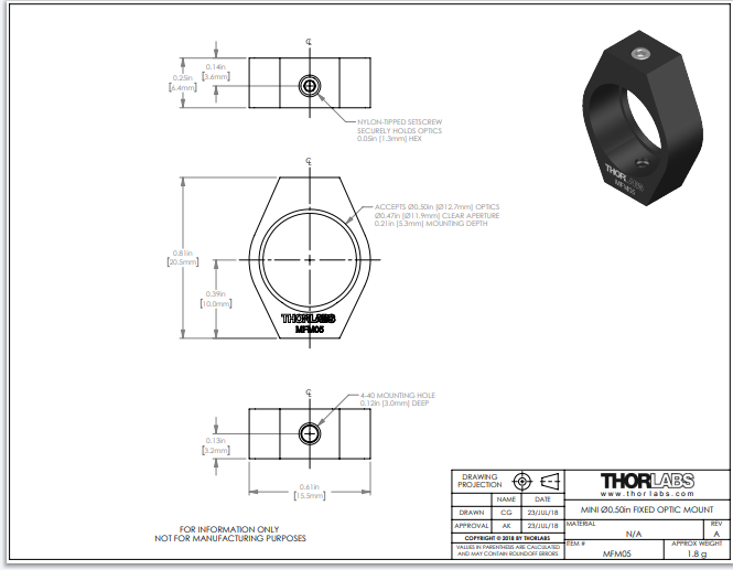 Thorlabs索雷博     MFM05 - 迷你系列固定式安装座