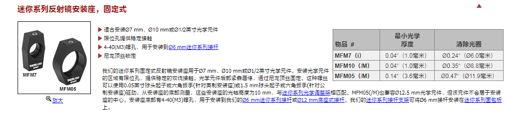 Thorlabs索雷博 MFM05 - 迷你系列固定式安装座