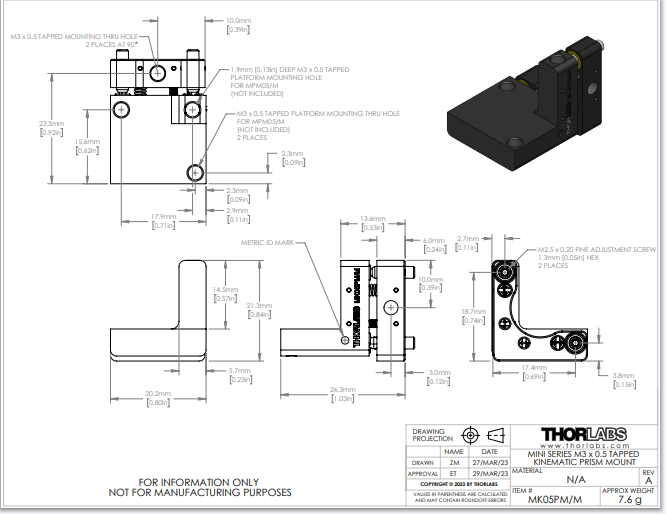 Thorlabs索雷博 MK05PM/M - 迷你系列光学棱镜调整架