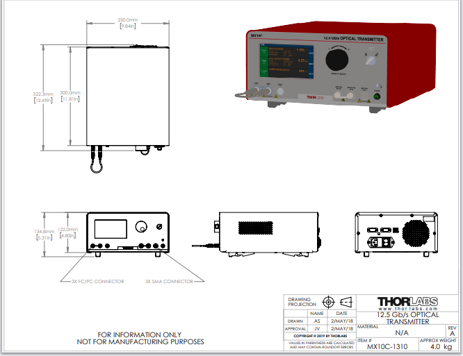 Thorlabs索雷博     MX10C-1310 - 高速光信号发射器