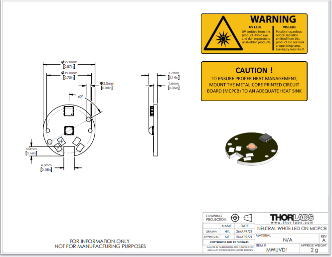 Thorlabs索雷博 MWUVD1 - MCPCB上的LED