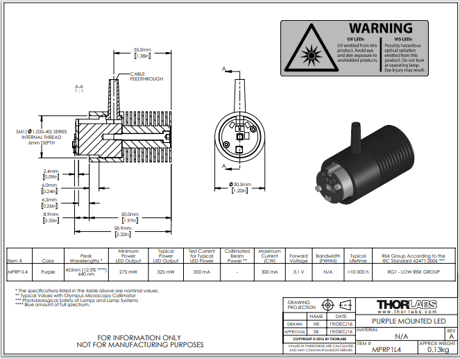 Thorlabs索雷博 MPRP1L4 - 已安装LED