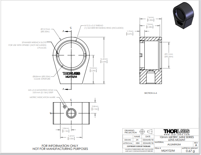 Thorlabs索雷博     MLH10/M - 迷你系列透镜安装座