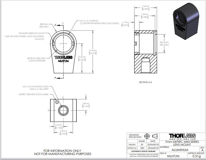 Thorlabs索雷博 MLH7/M - 迷你系列透镜安装座