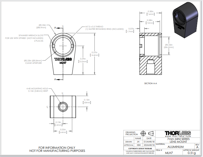 Thorlabs索雷博 MLH7 - 迷你系列透镜安装座