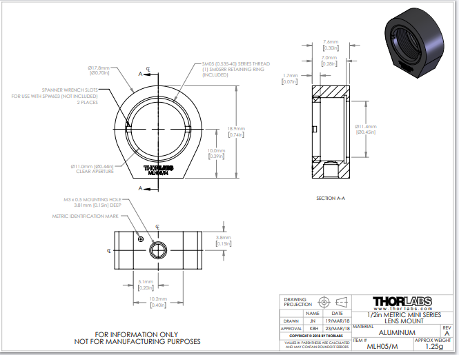 Thorlabs索雷博 MLH05/M - 迷你系列透镜安装座