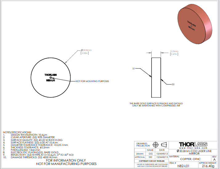 Thorlabs索雷博     NB2-L01   CO2激光器反射镜