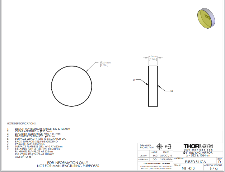 Thorlabs索雷博     NB1-K13   Nd:YAG反射镜