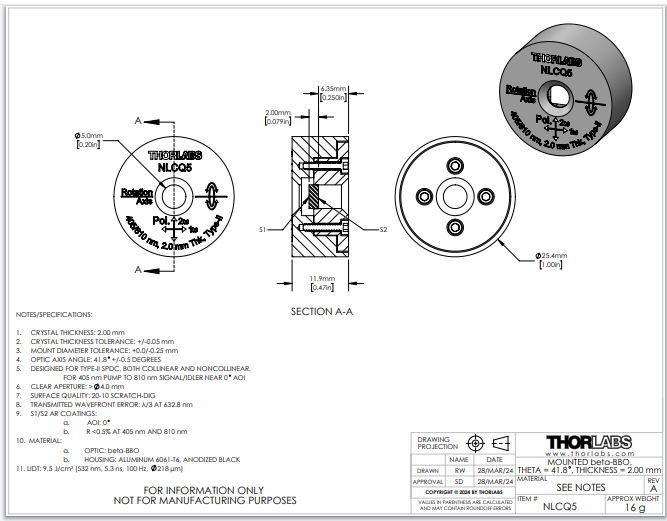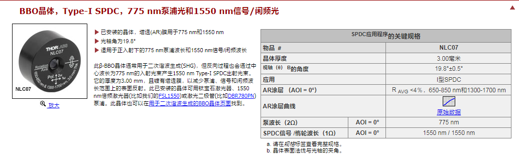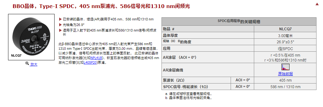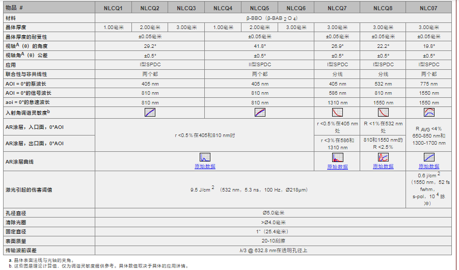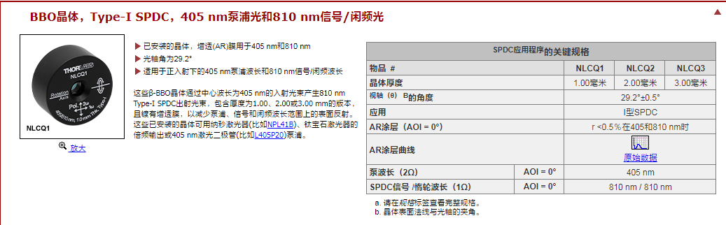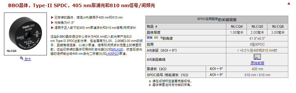 Thorlabs索雷博 NLCQ5 - 已安装的β-BBO晶体