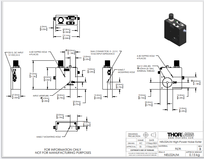 Thorlabs索雷博 NEL02A/M - 高功率噪声衰减器/电光调制器