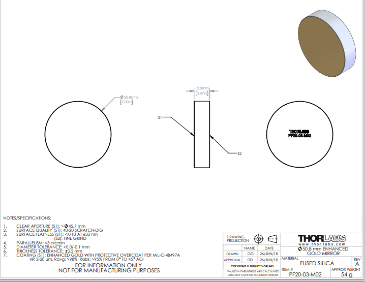 Thorlabs索雷博     PF20-03-M02   平面反射镜