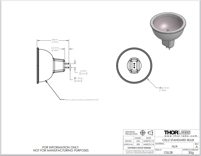 Thorlabs索雷博     OSL2B - 更换用的灯泡