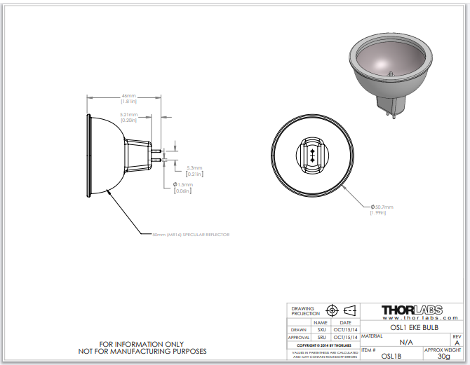 Thorlabs索雷博 OSL1B - 更换用的灯泡